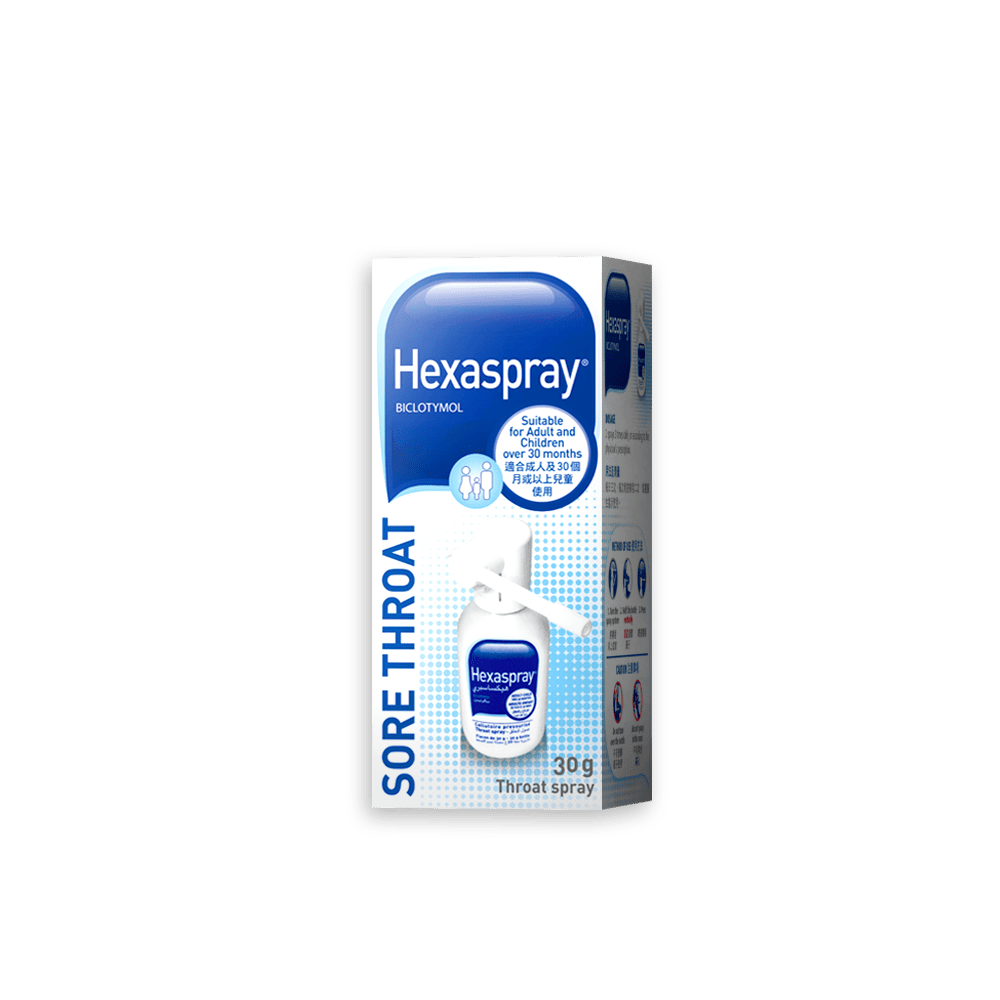 3.針對咽喉患處:Biclotymol能夠黏附在口腔咽喉黏膜中的蛋白質上。延長Biclotymol的抗菌作用,因Biclotymol和上皮細胞之間的強效親和力。